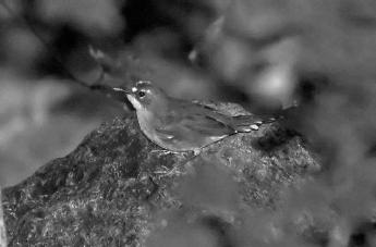 The Fan-tailed Warbler [Photo: Mark W. Lockwood], more usually found in Mexico, has been recorded only a handful of times over the years in the Southern USA, but never before in Texas. Internet reports told us that this accidental visitor had been seen almost daily for several weeks in one specific Canyon in the Chisos Mountains. A Ranger told us that people had been traveling from all over the country to see it, and that it was still being seen daily.