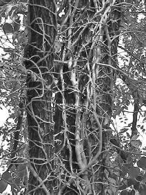 gridwork of vines strangling the host tree. We’re not talking about slender morning glory tendrils encircling the trees, but strong cords, some as thick as a wrist, that encase the trees in an ivy vise. The first tree I girdled because a Chip Notes article convinced me English ivy was killing trees. Appalled by what I found, the remaining trees were girdled for the sheer delight of knowing I was giving the tree another chance at life.